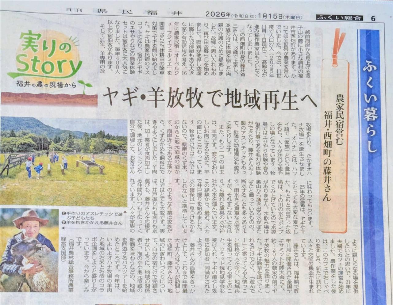 福井の農村ならではの農漁業体験はもちろんですが、福井の観光スポットである永平寺、恐竜博物館、三国芝政ワールド、スキージャム勝山などの観光の前後に多くのお客様に宿泊していただいています。