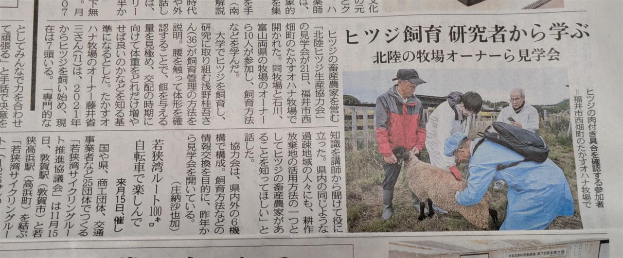 福井に限らず、中山間地域の限界集落に必ずある耕作放棄地の有効活用法として、ヒツジの畜産をヒントにしてもらえたらと思うのです。